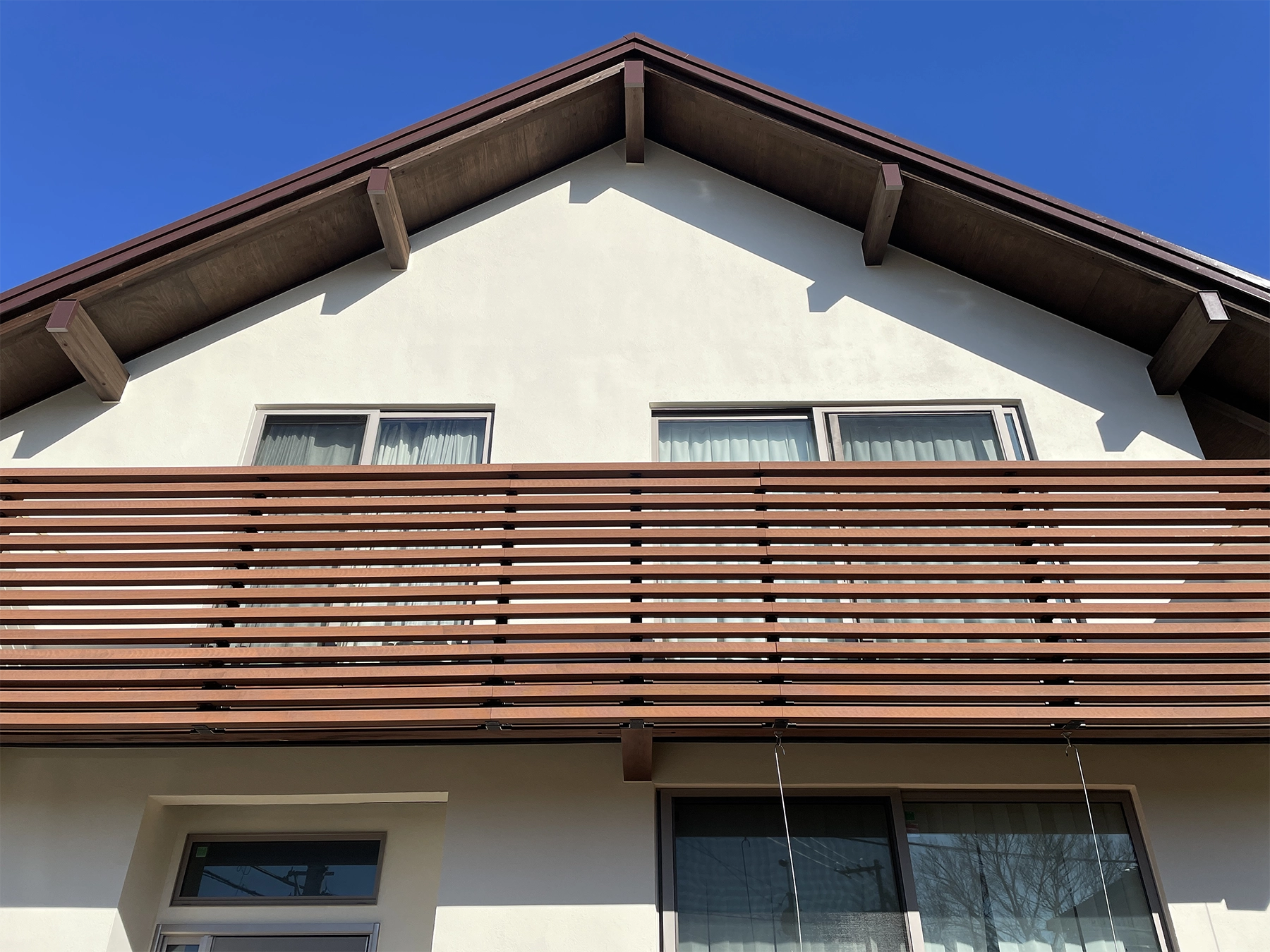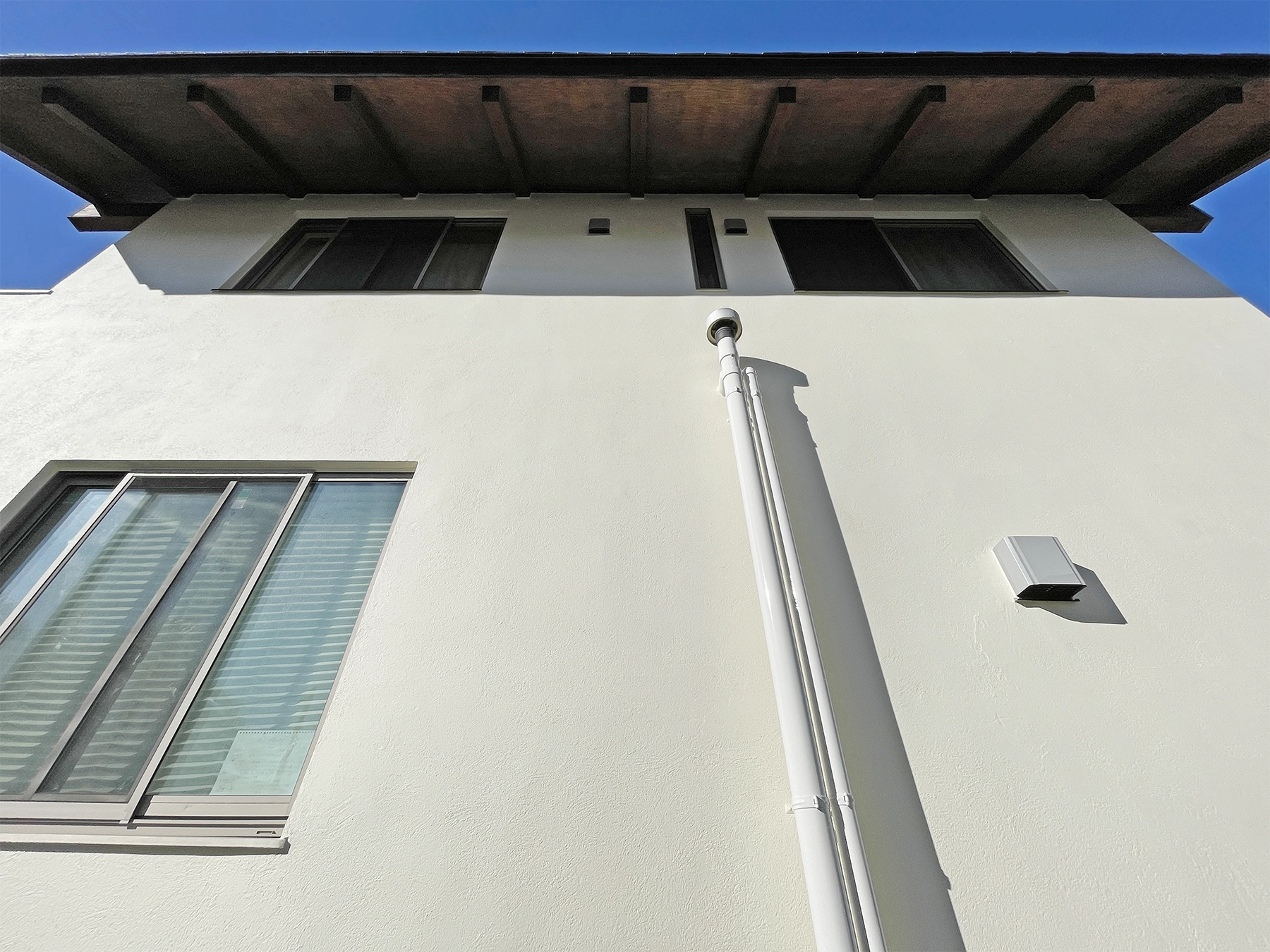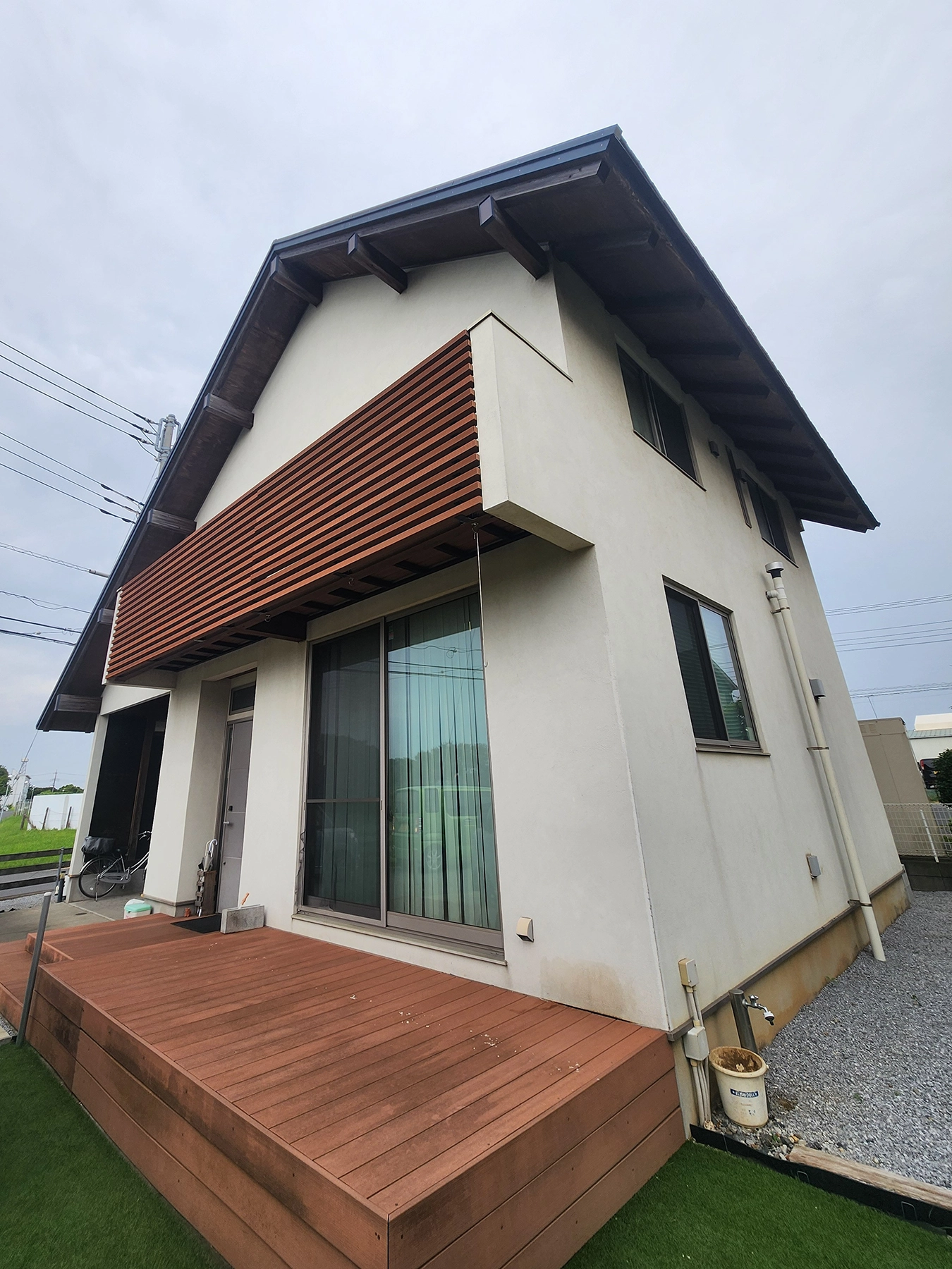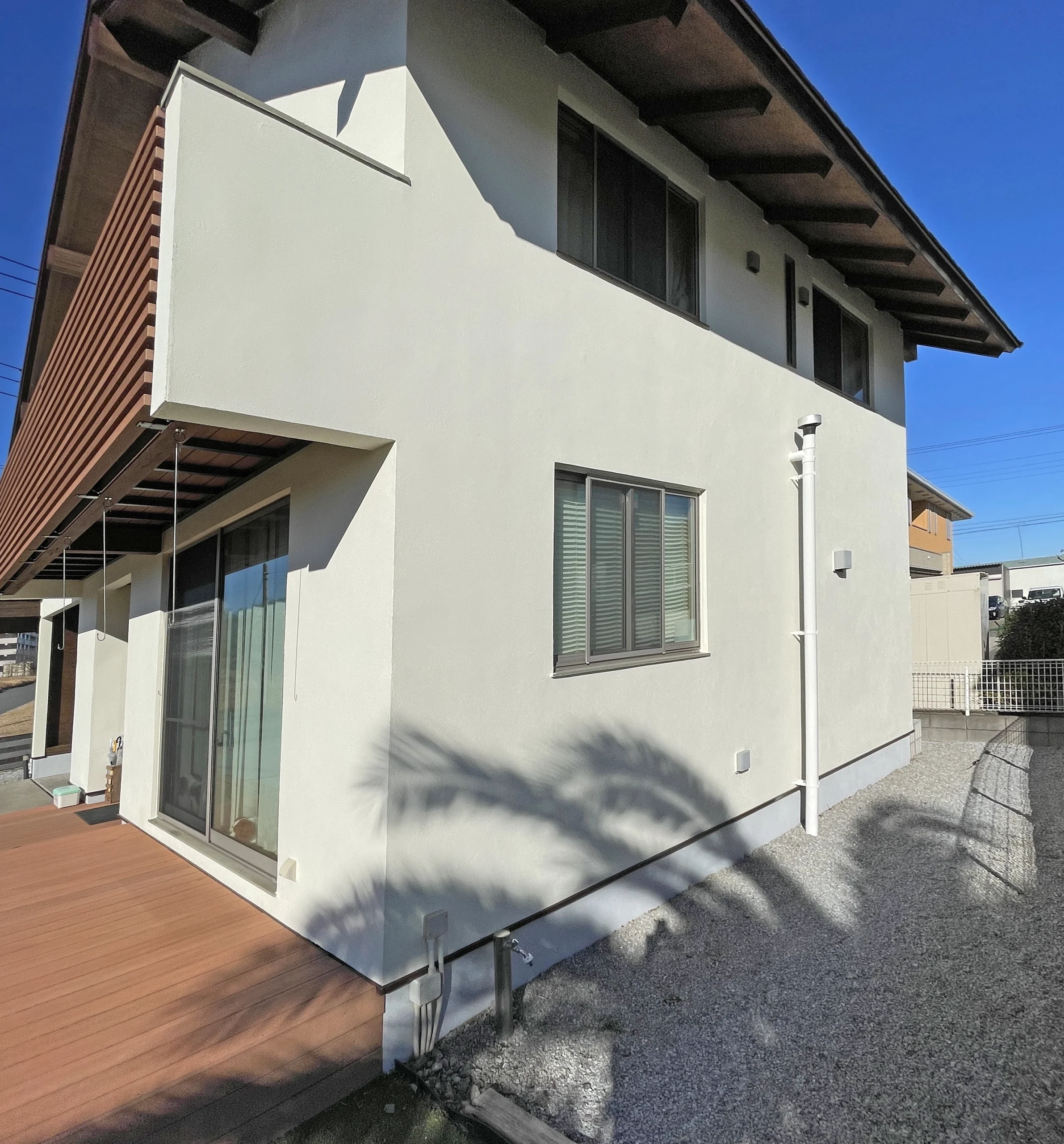 外壁はマットで明るいクリーム系の色に。遮熱性能もある塗料なので、猛暑対策としても◎。
